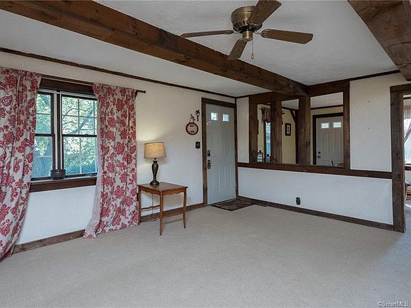Charming 1890's Colonial. All the charm of an older home with wood beams, updated kitchen with tile floor and new dishwasher, some doors missing on cabinets. Dining room located off kitchen, once you leave dining area enter into large living room with beams and a burning fireplace/stove. Walk up one step and enter into the large family room, great space for entertaining or a play area ,off the family room is the remodeled full bathroom with tile floor. Only thing not replace in bathroom was the bathtub. Laundry is also located on 1st floor. Upstairs are two good size bedrooms. One with carpet and walk-in closet and the other with hardwood floors, Furnace and hot water was replaced in 2009. This home will be sold "AS IS". It is a short sale. Large lot with large shed. Legal address is 58 but the home number on the mailbox is 60.