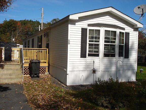 Newly listed is this 2009 manufactured home. Spacious kitchen, fully applianced, dining area, large living room with laminate flooring, master bedroom w/full bath, 2nd bedroom, 2nd full bath & laundry area. Newer storage shed with electricity, paved driveway, new deck. Excellent 55+ community with clubhouse. Great location to all points. Very well maintained park.