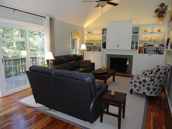 Private end unit townhome, all the bells and whistles! Beautifully updated w cherry floors, granite kitchen, baths w radiant heat, new tile. Stunning gathering room w gas fireplace, built-ins, vaulted ceiling. Spacious formal dining or sitting room/office. Both bedrooms are en suite, (master is l6 x 20), plus lower level offers rec room/bar, guest space and a huge craft room. Central air, newer heating/cooling systems. Walkout basement. One of the largest wrap decks, PLUS a screened porch overlooking a tranquil wooded setting. Great privacy offered, end of cul-de-sac. Sunsets, wildlife! You won't be disappointed. The work has been done for you! Minutes to shopping.