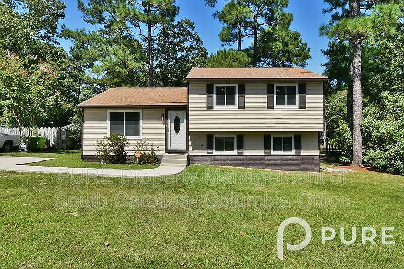 Lovely 4 bedroom, 2 full bath split-level home in the Foxglove subdivision in the Harbison area of Irmo. Nice-sized lot w/ mature trees and shady backyard located on a cul-de-sac street. Inside has been updated w/ luxury vinyl plank flooring, kitchen and bath upgrades, and ceiling fans throughout! Living room off entry open to the dining room and kitchen. The kitchen boasts an included stainless steel smooth-top stove, built-in microwave, dishwasher, and French-door refrigerator. Upstairs, there are three bedrooms, including the primary suite w/ a private bathroom w/ large shower. Two of bedrooms and a 2nd full bath w/ tub/shower and shelving off the hall. Great extra living space downstairs w/ a den and 4th bedroom/home office, and oversized laundry/storage rooms w/ walkout access to the backyard. Convenient to I-26, Lake Murray, Harbison Forest, community walking trails and recreation center. Richland/Lexington 5 schools. NOTE: NO PETS permitted in this home.
