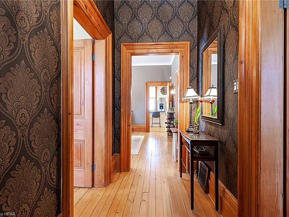 One of Stratford's finest! Exceptional Ontario Cottage, circa 1889 with beautifully designed Board & Batten addition, self-contained legally conforming 2 bedroom upper-level apartment, with covered balcony overlooking professionally designed gardens. Mature, long-term Tenant would like to stay. The original 3 bedroom, classic yellow-buff brick Cottage is absolutely charming. Features heritage-restored windows, original pine floors, impeccably maintained, original woodwork, soaring ceilings, fully renovated bath. Bright & modern kitchen with gas stove, SS appliances and concrete counters. Stunning main floor family room with heated polished concrete floors, high ceilings, new gas fireplace, custom doors and windows with walk-out to patio, w/gas-BBQ hookup. Impressive lower level Bonus room offers a multitude of uses, with kitchenette, 3 pc bath. Two separate/private concrete drives, with attached garage. With three levels of finished space, this home is well suited for a multi-generational family, home office arrangement or the opportunity to enjoy the benefits of rental income. Established neighborhood, easy walk to bus and train stations, Downie Street Bakery, Downtown, and the Stratford Festival Avon Theatre. A home not to be missed!