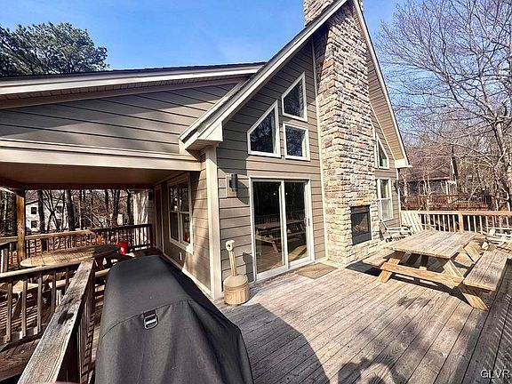 Step into a world of refined living within Lake Harmony Estates. This stunning 3 story Chalet offers a serene Mountain Escape, Imagine unwinding in the inviting living spaces. Large windows frame picturesque views, bringing the beauty of the Poconos indoors. A double-sided fireplace adds warmth and ambiance, perfect for entertaining evenings. An outdoor hot tub offers a private space for relaxation, near the fire pit providing an area for gathering and enjoying the Mountain under a starlit sky, Lake Harmony Estates also provides access to a clubhouse, marina. tennis courts and a private beach. Proximity to premier ski slopes, champion golf courses and water parks, just to name a few local attractions, ensuring a lifestyle filled with recreation and leisure. This Chalet offers a unique opportunity to embrace the sought-after Lake Harmony lifestyle, a location known for its high desirability and rental potential. It is a residence where cherished moments are made, and the allure of the Pocono's is always within reach. Discover the appeal of Lake Harmony living- Schedule your private showing today for this turn-key home!