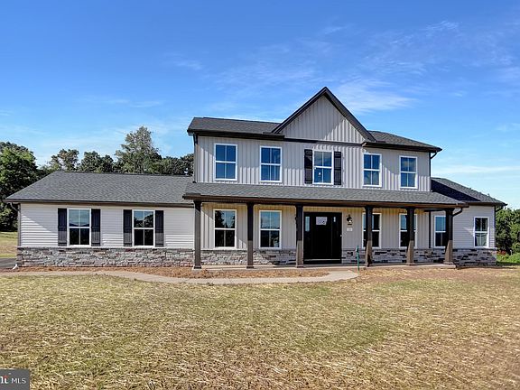 Modern meets rustic in this stunning brand-new home built by Fine Line Homes. An expansive full-length front porch welcomes you into this 2,343 sq ft, 4 bedroom, 3.5 bathroom home. An open 2-story foyer leads you to an office space, perfect for working from home, school work, or a cozy den. The flex room offers endless opportunities as a living room, dining room, or playroom and opens to the expansive family room, dining area, and kitchen area. Enjoy preparing meals in a kitchen filled with character as well as modern amenities, premium 36” tall cabinetry, and tons of pantry storage. Flooring consists of highly durable, waterproof, commercial-grade engineered vinyl plank and premium carpet. The primary bedroom is located on the first floor and includes a tray ceiling, a large ensuite bathroom complete with/ a double sink vanity, a tile shower, and first-floor laundry hook-ups. The oversized 2-car side entry garage allows for plenty of space and the 8’ height garage door will accept taller SUVs and trucks. The second floor includes 3 additional bedrooms, one of which is a 2nd primary! This bedroom includes it’s ensuite full bathroom and oversized walk-in closet perfect for teenage children or in-laws. A 2nd-floor laundry room with a convenient folding table and another full bathroom round out the 2nd floor. Enjoy the mountain views and privacy on this 2-acre lot, backing up to a scenic tree line. This home truly has it all offering peace, and privacy, 10 minutes to shopping & groceries, within 30 minutes to Harrisburg and Mechanicsburg. NO HOA FEES, NO WATER BILLS, AND NO SEWER BILLS.
