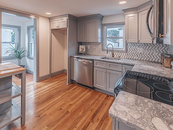 Move In Ready!!! Quality renovations complete on this charming Cape style home with fully fenced in yard. Spacious mudroom as you enter open to a gorgeous shaker style kitchen with modern gray cabinetry, stainless appliances, granite counter tops and mosaic marble and brass backsplash. Kitchen with island is open to the living room. Two first floor bedrooms and a exquisite bathroom with mid-century flair. Second floor is cozy and charming with T&G pine through out, walk in closet, large bedroom plus bonus office space/sitting room. Beautiful refinished original hardwood floors throughout the main level. All new replacement windows (even in basement), spray foam insulation, new roof, new hot water tank & so much more!!! Agent/Broker Interest