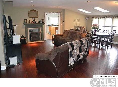 Spacious home in waterfront community! Updated 3 bedroom, 3 bath home features eat in kitchen with sky lights and french doors that lead to beautiful LR and DR. Large living Room features a wood burning stove and cherry floors. The 2nd floor, added in 2009, features the master bedroom with walk-in cedar closet, deck, beautiful attached bath w/jacuzzi tub and shower with bench seat. Obstructed water views from Master, LR, & kitchen. Fin.basement. Steps to river beach. Garage with loft. Must See!