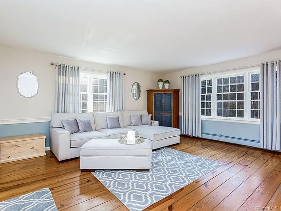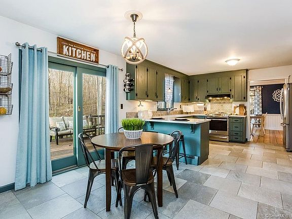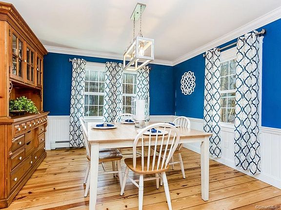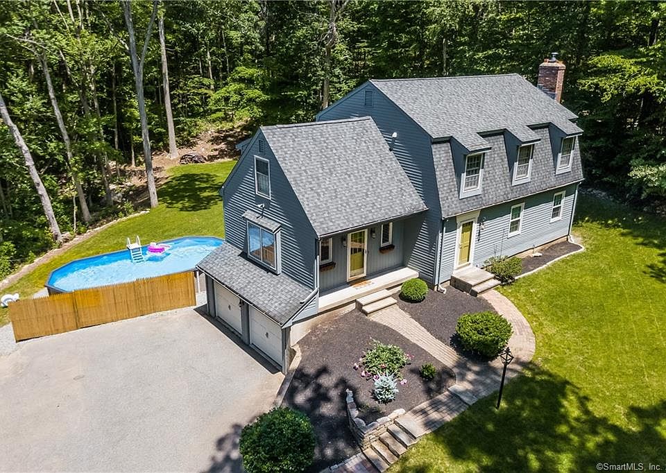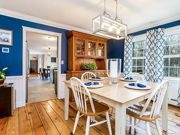 Stylish and Farmhouse dreamy best describes this picture perfect home in the heart of Hebron! This beautifully updated home is on 2 sprivate acres. The owners have done extensive work to the yard to expand it while still maintaining complete privacy. Situated so close to the town center this home is Location perfect too. Stylish updated eat-in kitchen with white quartz counters, breakfast bar, subway tile backsplash, stainless appliances and slider to the deck and huge outdoor entertaining space overlooking the newly added pool! Perfect for this summer! The first floor also features a spacious formal dining room with newly added crown molding, chair rail and beadboard paneling, a formal living room with wide board wood floors, new wood burning stove insert in the brick fireplace and newly added crown molding. The home welcomes you into the large sun-drenched family room with wide board wood floors. Gorgeous spacious half bath and laundry room. The second floor features a large master suite with two spacious closets and a private bath with tile surround walk in shower. 3 additional generously sized bedrooms and a full bath - great storage space too! The partially finished lower level features built-ins and adds approx. 264 additional square feet. Aside from the huge large expansion project and pool addition; the owners have added new CAIR! And a new Heat Pump. Electrical upgrade to 400amp with underground utilities, Gas stove for cooking, 7 new triple glazed windows!
