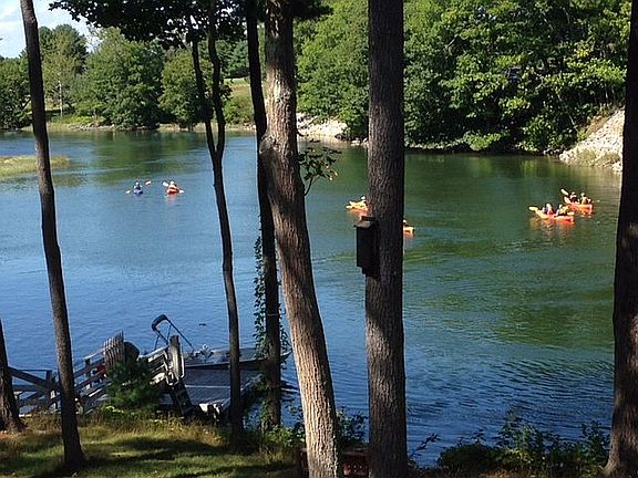 Stunning, private, waterfront home, located on the Kennebunk River with views overlooking the water and the rolling fairways of the Cape Arundel Golf Course. The best of both worlds! Boat, swim, sport fish or just catch a picturesque sunset from your private dock, all within walking distance to the beaches and the quaint village of Kennebunkport. Enjoy an open concept 1st floor with kitchen, dining, and living room with stone fireplace, cozy den and first floor master suite with loft office. The second floor has 5 bedrooms with 2 baths. The lower level is beautifully finished with game room, family room and workout room all overlooking the water. Two decks with patio finish this home for summer fun.