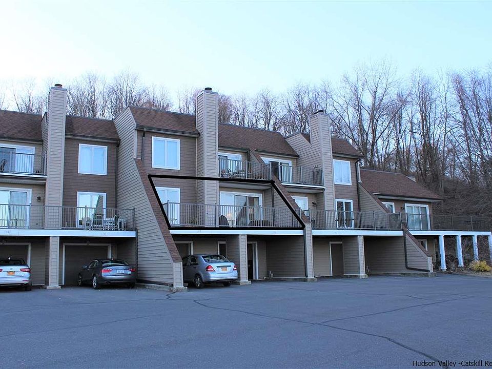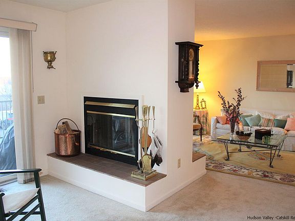 Rare first floor unit in Building 5 that has no drive through traffic. Large unit with 1,347 square feet on the main level and an additional 336 square feet in the basement. This one bedroom 2 and a half bath with finished basement, currently being used as a den, has its own attached full bath. Bright living room; sit by the wonderful two sided wood burning fireplace as you gaze out at the Hudson. Original owner has used the condo mainly on weekends as it was a second home. A new furnace was put in about 7 years ago and pretty much everything else is original and in excellent condition. Enjoy the outdoors on the large terrace overlooking the Hudson or sit by the quiet front patio by your front door. The attached single car garage makes for easy access to the unit. Riverview has a pool, tennis courts and a club house. And of course the Hudson River ready for you. Just walk in for paddling, kayaking and fishing!