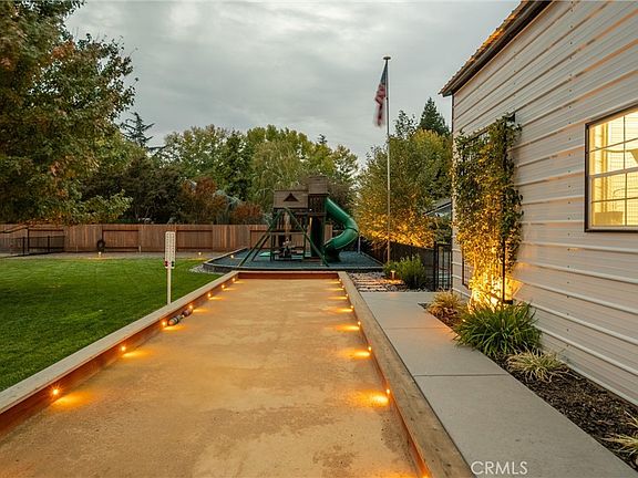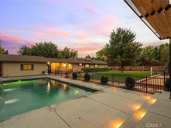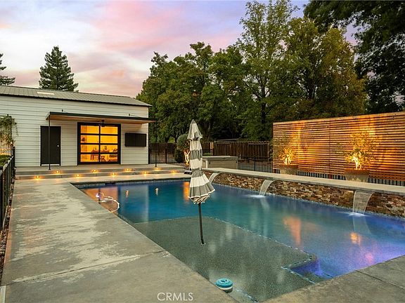 This incredibly rare North Chico property has been meticulously maintained, upgraded and added to over the years and shows an immense pride of ownership. Located on over an acre of land, this is truly an entertainer’s dream location and property with a modern, salt water, PebbleTec swimming pool with waterfall and lightshow features, a huge 30 by 50 ft shop with an insulated, metal roof that is rated for solar, guest home or mother-in-law quarters located within the shop, and 3 bedroom, 2 bathroom main home that was fully updated in 2017 with a detached 2 car garage. This property has ample space for your toys, equipment, boat/RV, 4H projects and would also make an incredible horse property. The outdoor living space has been lovingly created into the ultimate play area for both kids and adults offering an inground trampoline, playset, garden area, multiple lounge areas around the home and pool, lighting hard wired throughout the grounds, bocce ball court, and more! The shop was built in 2021 and the guest quarters inside the shop was just finished. The guest quarters offer expansive ceilings, mini-split with a heating and cooling feature, a modern bathroom with a tiled shower and quartz countertops, electric fireplace with blower and wood cedar mantel, an incredible kitchen with stone tile backsplash, concrete countertops, custom cabinetry with a space for a dishwasher, beverage fridge, ice machine, and microwave. The space also includes a custom cedar desk/private working area and includes plenty of room for a living area, bedroom set up, mother-in law quarters… or choose to utilize this area for the ultimate entertainment/pool house or game room set up! The main home offers brand new paint and carpet throughout the entire home. The kitchen includes stainless steel appliances, recessed lighting, custom cabinetry, concrete countertops and offers a full dining area. The family room conveniently looks out onto the pool. Down the hallway you will find 2 large bedrooms, a guest bathroom with shower and tub, and a huge master suite with a private outdoor patio, a large master closet, and a beautifully tiled shower. This dream property is a one-of-a-kind and won’t last long. Call today for a private showing.