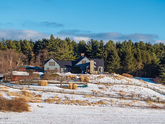 Come relax amid sweeping pastoral and mountain views in this exceptional retreat designed for both entertaining and everyday comfort. The impressive great room, anchored by a massive stone fireplace, offers a welcoming focal point and flows into a spacious well-designed kitchen/dining area. A screened porch with fireplace overlooks the pool and rolling landscape, creating a seamless indoor-outdoor experience. The first-floor primary suite features a luxurious bath and tranquil views. An exceptional cinema room includes theater-style reclining seats and a half bath. Generous guest accommodations throughout. A private office suite with full bath. Outdoors, enjoy an infinity pool, bluestone patios, lush gardens, a charming pool house — all just three miles from downtown Great Barrington.