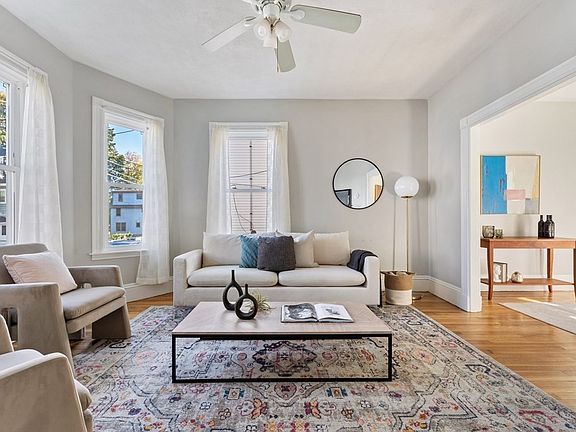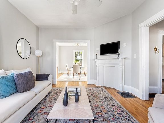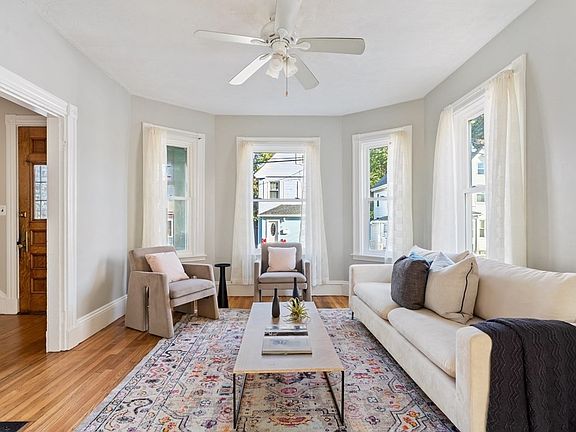 Hyde Square three-level single family with backyard and parking. A large vintage door opens into a foyer with an ornate newel post and stained glass window. The bow front living room with mantle dramatizes the high ceilings. A spacious dining room overlooks the backyard. The large eat-in kitchen provides ample space for an island, and direct access to the backyard with patio. On the second level, find two adjoined king-size bedrooms and a third bedroom. A renovated bathroom with radiant-heated floor completes this level. The third level offers a bedroom and adjacent office. One more 160 sqft room can serve as a fifth bedroom or den. This floor is already plumbed for conversion to a bedroom suite. Enjoy two-zone heating and cooling, with 2022 high-efficiency Navien hydro air. Driveway parking. Doors to a community garden. Blocks to shops and Whole Foods. Blocks to Orange Line at Jackson Sq and Green Line at Heath St. Quick access to Longwood Medical Area via 39 Bus at S. Huntington Ave.