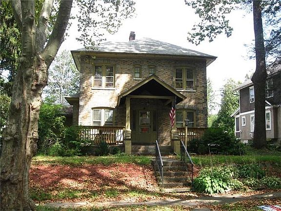 Eligible for USDA 100% financing. Handsome brick home full of charm, character & mid-century craftsmanship. This classic is located on a beautiful tree lined street w/in walking distance of everything in the boro & just minutes to I-80! Enter from the broad front porch w/a neat brick inlay into the LR with beautiful inlaid oak flooring, decorative fireplace, stained glass & box beam ceiling. DR has built in cabinetry. Huge 1st floor Family Rm with pegged oak flooring, rustic wood paneling, vaulted & beamed ceiling & has a sliding door to a great Sunroom. Updated kitchen with raised panel cabinetry & tile flooring. 1st floor laundry & updated powder room. Updated & spacious modern bathroom. Wonderful fenced in backyard with expansive decking & a cute patio. Gas hot water heat, New Central A/C (2016) & New gas hot water heater (2015). 2 car detached garage with insulated doors. Finished room in basement. Great home for the character buyer. Walking distance to East Stroudsburg University.