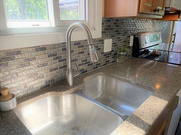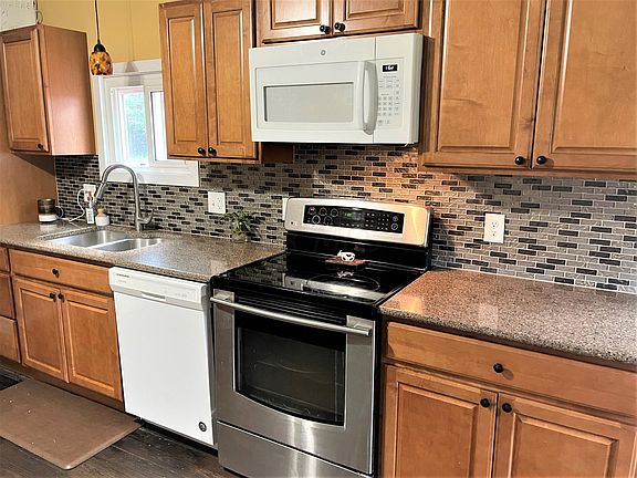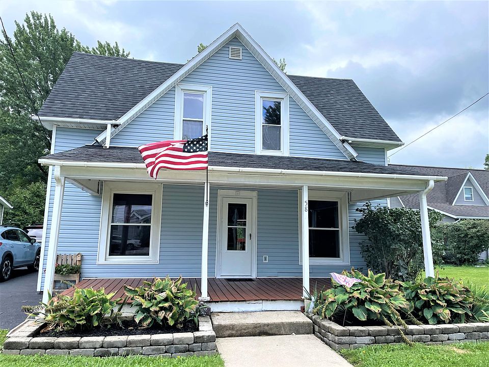 Cute as can be village home with a new kitchen, quartz counter and ceramic back splash. First floor bedroom plus a large landing and two bedrooms upstairs. Perfect for either one floor living or a growing family. The back yard is fenced and has a great covered deck. Parking for 4 cars off the alley plus a storage building. There is also a paved driveway an parking for 3 cars off Mill Street. Hard wood floors, all new drywall and wiring in the kitchen. Low taxes!