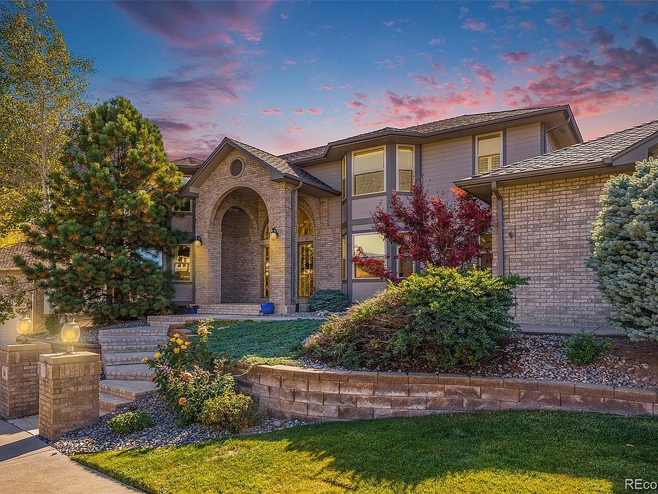 Natural light streams through this Mesa View Estates home. Situated in a prime location, this home offers a serene atmosphere of tranquility and luxury. As you enter the home, you are greeted by a grand foyer leading to the expansive living area. The main floor seamlessly connects the living room, dining area, eat-in kitchen and patio. The living room features vaulted ceilings and large windows allowing natural light to accentuate the hardwood floors and elegant finishes. The spacious kitchen is a chef's dream, with stainless steel appliances, double ovens and a large island. Step right outside of your kitchen into the backyard and discover a true outdoor paradise. The expansive patio area is perfect for hosting gatherings, as your guests are dazzled by the majestic landscaping and impressive waterfall feature. The house boasts 5 spacious bedrooms and 5 bathrooms, including two private en-suite bathrooms and a Jack-and-Jill connecting two bedrooms. Retreat to the oversized master bedroom with a spa-like ensuite featuring a soaking tub, separate shower, dual vanities and two walk-in closets. Mesa View Estates is known for it's prestigious location and proximity to highly-rated schools. An abundance of shops, restaurants and entertainment is just a short drive away at nearby Colorado Mills. With easy access to major highways, commuting to Denver or the mountains is a breeze.