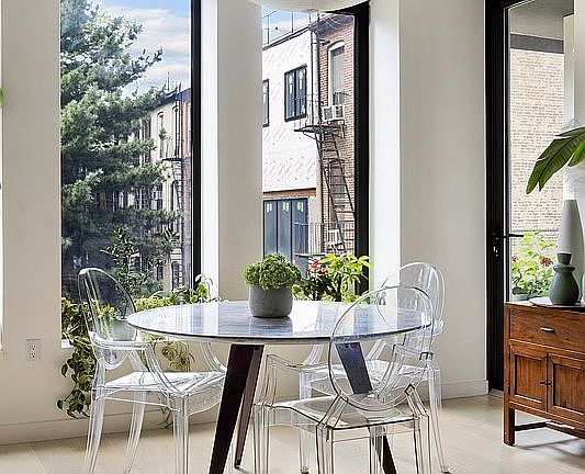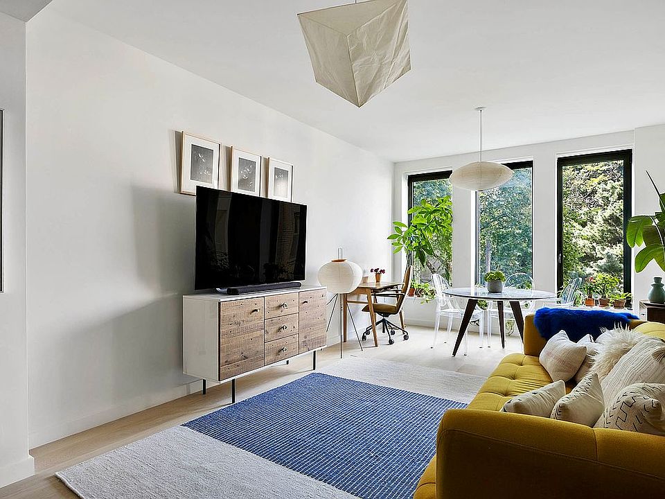 Residence 212 is a two-bedroom, two-bath home featuring tall ceilings, western exposure, a large private terrace, and private parking and storage included in the sale. The whole home overlooks the building’s lush garden and the backyards of the townhomes on St Marks Pl and Warren St – creating a true urban green oasis. Exceptionally quiet yet filled with light, the home offers a peaceful retreat from city life.