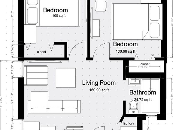 The separate kitchen has full sized appliances w/ microwave and dishwasher. Full Sized laundry in unit