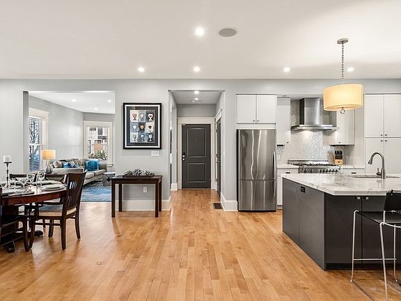 - Kit Dscrp: Flooring - Hardwood, Countertops - Stone/Granite/Solid, Recessed Lighting, Stainless Steel Appliances, Kitchen Island, Open Floor Plan, Gas Stove, Lighting - Pendant