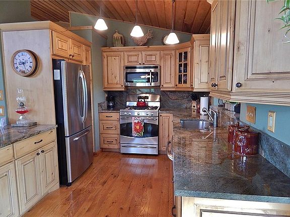 Partially furnished home sits at the end of a quiet cul-de-sac in a private aspen grove. Two master suites both with walk-in closets, and the HUGE main level master has a 5 piece bath w/ radiant floor heat. Completely remodeled with NEW windows, rustic knotty alder hardwood floors, T&G vaulted ceiling, wood stove, knotty alder doors throughout, wraparound deck, metal roof and an OS 2 car garage. Kitchen features custom cabinetry, "wave" slab granite countertops, breakfast bar and SS appliances.