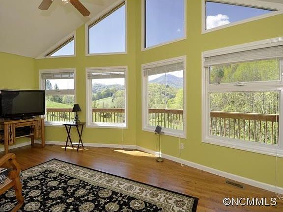 Immaculate, low maintenance home in stunning pastoral setting with long range mountain views on private 2.43 acres with creek, fruit trees and adjacent waterfall and wide trail for hiking. Also available with additional 2.49 acres, see MLS# 583087. 3 car garage with workshop area, camera security system, outdoor TV antenna with outlets in each room. New roof. Move in ready. 20 minutes to Downtown Asheville. Zoned OU with no overlays.