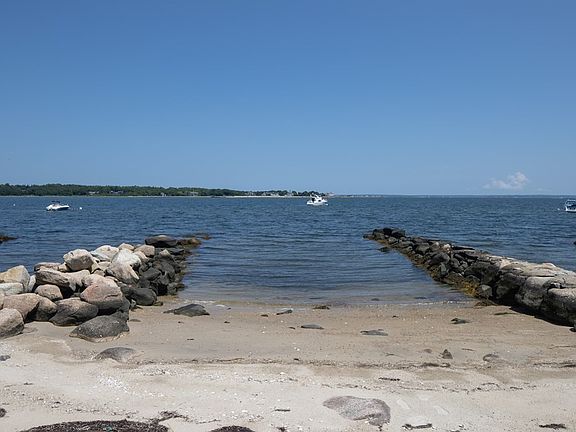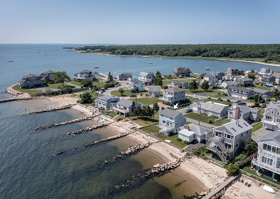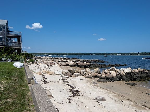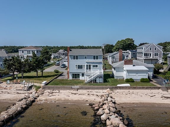 Ocean-front property at Mattapoisett’s Harbor Beach. Enjoy swimming at your own sandy beach directly in front of your home w/ panoramic views of Buzzards Bay, Converse Point and Bird Island looking out to Falmouth and the Cape Cod Canal. This year-round, 2 bedroom, 2 full bath home has a spacious flow w/ an upper living level w/ 2 floors including open living/kitchen/dining space w/ sliders to oceanfront deck, utility/laundry room with updated systems, and full bath; the top floor has 2 good size bedrooms w/ ocean views and 2nd full bath. The above-grade, ground-level 1st floor has a fireplace, plenty of windows, garage-style door open to backyard and beach for easy access and storage; and in general this floor offers possibility for further finishing and updating as informal summer living room or possibly make it additional year-round living space. Town water. Private Septic. New septic system design is underway. Opportunity exists to add your own value with this oceanfront home.