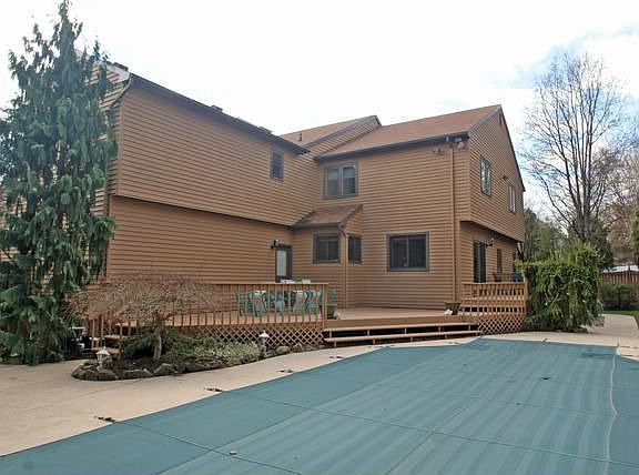 Welcome home to this open easy flow contemporary with the warmth of a traditional colonial.Enjoy the wonderful floor plan with formal living & dining areas with tons of natural light.Spacious family/great room with gas fireplace that opens up to a breakfast room & cooks kitchen.Sliders off the breakfast room lead out to the deck & pool area. 4 bedrooms all on second level, master bedroom includes sitting room,exercise room & luxurious bath.Lower level is the perfect spot for entertaining with wet bar and full bath. This fine home offers a wonderful opportunity to enjoy a superb location, pretty setting and lovely interior spaces- all in one package!