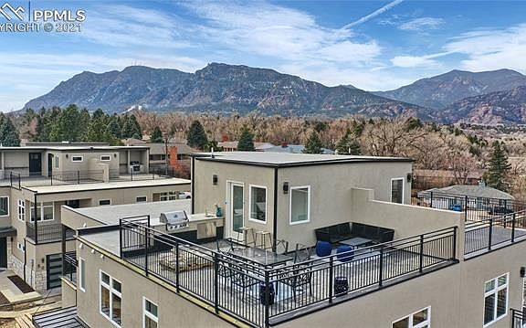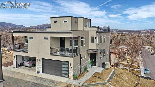 Presenting the Parade of Homes Award Winning modern designed Townhome Community in Colorado Springs! Clean lines, natural light, open living space, superior finishes and functionality are what people are looking for and you will find it here! The kitchen features incredible cabinetry, top of the line appliances and huge center island. Private elevator goes all the way to access the rooftop deck and offers great convenience. The the well-appointed great room and roof-top deck are perfect for gatherings or relaxing. The second floor boasts the master suite with private balcony and city views and a secondary suite with private balcony and mountain views. The construction features a Helical Pier Stabilized foundation system.