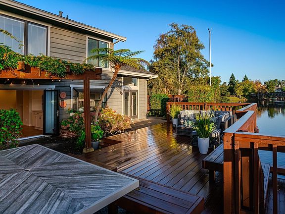 Located on the serene lagoon in Bay Farm, this property offers a picturesque setting with a deck right on the water—perfect for enjoying beautiful views morning and night, perhaps with a glass of wine. The neighborhood is charming and convenient, with the Harbor Bay Club, a full-service gym, just a short walk away, along with Safeway, Bay Farm School, and Amelia Earhart School, both highly rated and within walking distance. The community also features tennis courts and a ferry station for easy access to the cities. This home has been recently renovated, showcasing a beautifully remodeled kitchen with gas cooking, new hardwood floors and carpet, a refreshed shower in the master bathroom, updated stair railings, and all-new recessed lighting throughout. It’s the perfect blend of comfort, style, and convenience in a breathtaking location. Note: Please avoid blocking the neighbor’s mailbox when parking. Thank you!