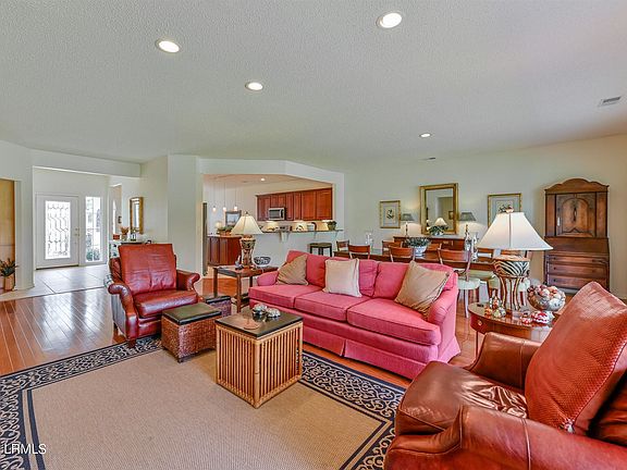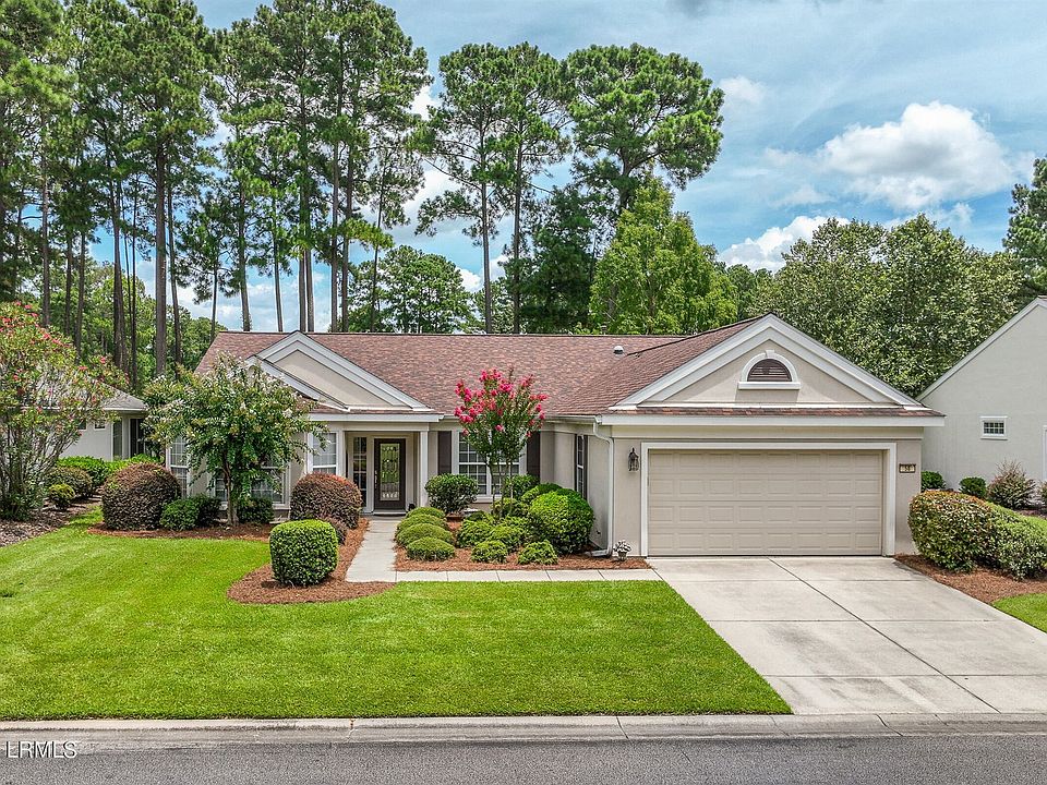 This pristine 2BR, 2BA home with large office has gracious living space. 2293sq ft with open floorplan, wood floors thru living area & hallway. Open formal dining. Large kitchen with tons of cabinet space, granite counters, separate pantry & large informal dining area. Large Master en suite with soaking tub & separate shower (newly installed seamless glass),2 large walk-in closets. Brand new carpeting in BRs. Extended garage with muck sink. Vast fairway views from back of home. New HVAC in 2020, New roof in 2020, Exterior paint 2021. Close to amenities & shopping.