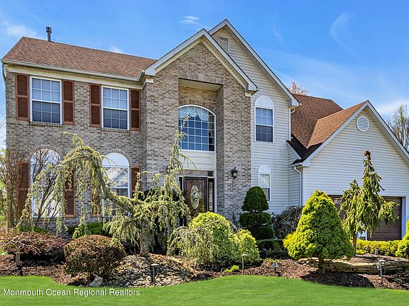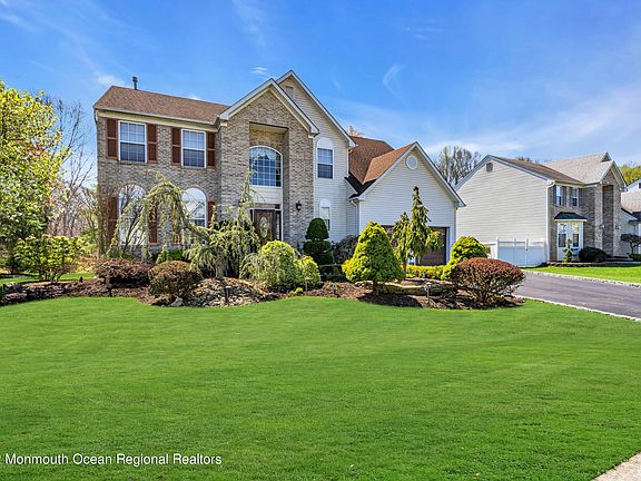 Fully updated, center hall Colonial in the desirable High view Estates development in Old Bridge! Enter into the vaulted foyer with custom tiling. Brazilian cherry wood flooring in the formal Living and Dining rooms, with recessed lighting and crown molding throughout. Sunken Family Room with elegant mantle and gas fireplace. Custom Kitchen with new stainless steel appliances, built in wine cooler, pull out dishwasher, granite countertops, and custom cabinetry. Second level features Brazilian cherry wood flooring. Master suite has cathedral ceiling, with two closets, master bath with double vanity, soaking tub, and stand up shower. Three more generous sized bedrooms, and a hallway bath with double vanity and tub/shower. Slider off kitchen to paver patio, and backyard featuring built in barbecue, gazebo, storage shed and paver walkway to the front yard. Backed to private grass area that is maintained by the association. Home has a finished basement with plenty of additional storage space. Come check this one out today, it will not last!
