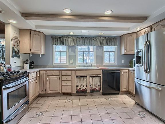 Older Colonial with heated enclosed front porch has lots of character and charm and just needs a little vision to make it your perfect family home. Spacious kitchen with tiled floor, large pantry in back, a good size living room, dining room has hardwood ceiling and floor, ceiling fan and French doors which open to the bright and airy sun room addition with sliders to the newer deck. Upstairs you have three bedrooms, the master with ceiling fan, a tiled full bath with separate shower and a walk-up attic with skylights. The lower level is partially finished for more living space. Outside you will find a detached garage with loft for additional storage, a screened room off the back with a summer kitchen and overlooks the above ground pool and patio area for all your summer gatherings. Special features include newer furnace & c/a, well Water for pool and landscaping. This home is located in the center of town close to shopping, restaurants and easy hwy access!