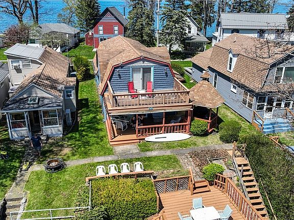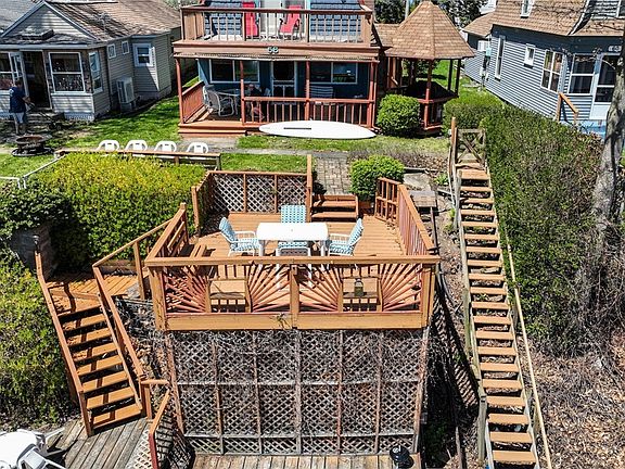 Looking for the ultimate summer escape? This rare waterfront property blends relaxation and excitement, and the seller is willing to include a boat, trailer, and slip for endless adventures on the water—boating, fishing, kayaking, and sunset cruises await. Ideal for hosting gatherings or quiet evenings, this home boasts an expansive two-story deck perfect for lounging, grilling, and entertaining. A local favorite restaurant across the water adds weekend live music, making summer nights vibrant and fun. Inside, this 3-bedroom home with a bonus room features an open layout, a spacious main floor, and a custom bar with dual kegerator taps. The home is fully updated with new plumbing, electrical, a modern drop ceiling, and a remodeled kitchen with a new stove and island. Best of all, it’s fully furnished and ready to enjoy from day one! For investors, this property has a strong Airbnb history, with seasonal bookings starting in April. Weekly rates are typically around $3,200 in summer, with higher earnings on holidays. Enjoy a memorable summer retreat and income-generating asset rolled into one—your waterfront paradise awaits!