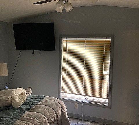 Completely gutted and rehabbed in 2019, including new siding, skirting, roof, overhangs, windows, foam insulation above and blown insulation below, flooring, doors, appliances. All walls and ceilings are drywall. Interior features include window blinds, ceiling fans in living area and 2 bedrooms, vaulted ceilings. Sale includes property and home, covered porch/deck and shed.