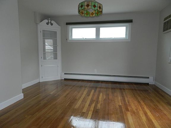 This lovely apartment has 3 good sized bedrooms on the 2nd floor. Plus an updated full bathroom and 1/2 bathroom. Newly finished hardwood floors throughout. The 1st floor has a bright and sunny living room and an large sized dinning room. The eat in kitchen is packed with newly painted cabinets and granite counter tops. The yard is compact, but boasts a deck with attached awning and a patio area. There is a full basement for storage and extra bonus room.