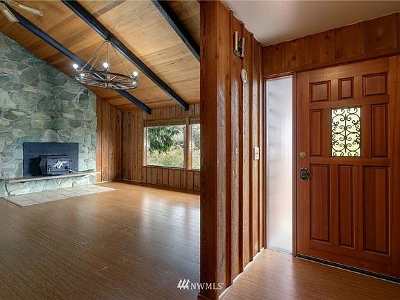 Affordable "move-in ready" 2 bed 1.5 bath Shelter Bay home on spacious lot. Large main living room with fireplace and wall constructed from rare Shuksan blueschist and greenschist stone. Large, attached 2-car garage with room for cars and work bench. Separate RV parking detached covered carport. Spacious yard is perfect for gardening or entertaining. Enjoy all the Shelter Bay amenities including swimming pool, tennis courts, marina, golf, club house, 2 private beaches and BBQ area
