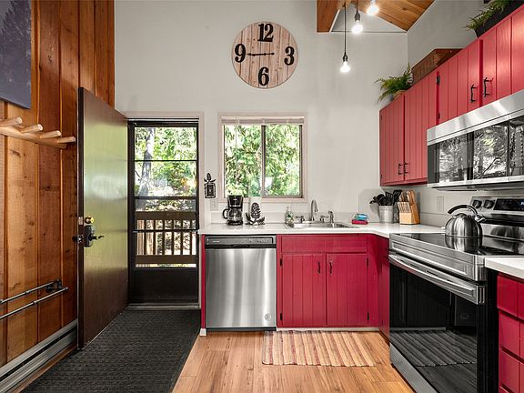Located in a highly sought after location in Ptarmigan village, this 2 bed/2 bath VRBO weekly/nightly condo has had a kitchen remodel as well as new flooring. This well maintained charmingly decorated home features beautiful wood trim throughout, Cathedral ceilings, floor to ceiling wood burning fireplace, a spacious private deck, 2 bedrooms & 2 full baths, heated laundry/storage room & it's own private parking area. This unit is being sold completely turnkey including the quality Montana Lodgepole furniture. Amenities include indoor salt water pool, an outdoor pool, tennis courts, fishing pond, 2-hot tubs, access to the private homeowners beach on Whitefish Lake & hiking trails throughout the community.