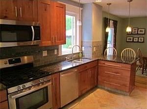 Absolutely beautiful kitchen with custom cabinets, granite counter, tile back splash and radiant heat under tiled floor. This house is truly unique- new windows, siding, efficient heat, tank-less hot water, electric and new insulation. This house has all the benefits of new construction coupled with the charm and character of older construction. The home boasts such features as gleaming hardwood throughout, fireplace in the living room, and tile in the kitchen and bathrooms.