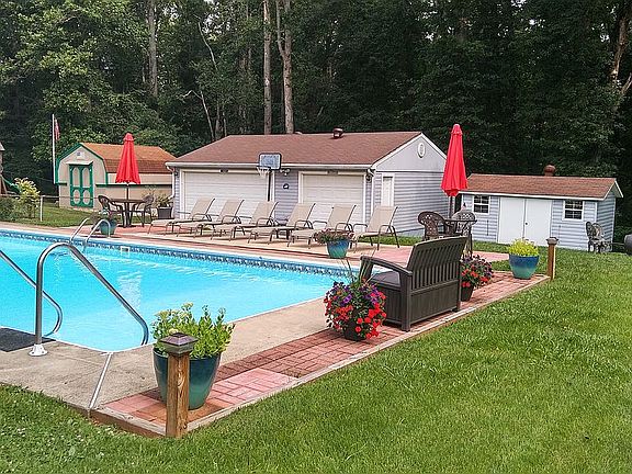 Beautiful updated Rancher with Alum Siding, Double Pain Windows-Half Screens-Locks-Pull In to clean, New Roof & Gutters, ADT Alarm, 4 Bedroom, 1 Bath, Living Room with Fireplace, Dining Room - Kitchen updated with all new Stainless Steel Appliances, Refrigerator/Stg Drawer/Bottom Freezer, Glass top Stove, Microwave-1500W, Dishwasher, Sink, Lighting & Light-Fan-Blk/Satin Nickle, new Counter Tops, updated Bathroom with new Sink, Shower - Stainless Steel Faucets, Toilet-Dual Flush, All Electrical Switches-Plug In's Replaced, All Hse Fan's Replaced-Wood/Satin Nickle, All Upstairs Doors replaced, New Fiberglass Front Door With Window-Peephole-Never Paint, Pella Roll Up Storm Door, Den with Fireplace, Finished Basement & just put new Larson Roll Up Screen Door, Screened in Sun Room 40X12 ft - New 3 Fans, Carpeted overlooking Beautiful In ground Pool-18X36-10ft deep, with lots of Patio, Patio 40X12 ft under Sun Room, Side Deck-Trex Composite with Lights, wide steps leading to Pool & Patio under Sun Room for lots of entertaining! Woods in back! 3 Bay Garage & Beautiful Utility Shed all matching house! Driveway can hold 6 cars plus drives all way to back at garage! Censored Lighting all around the house for security & safety!