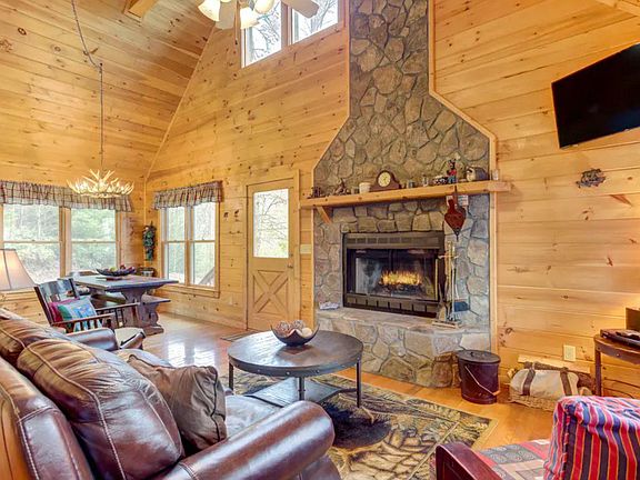 SUCCESSFUL RENTAL IN THE HEART OF THE ASKA ADVENTURE AREA! Very private location with no neighbors in sight, this cabin boasts great monthly profits! The key to this one's success is being w/in 5 min to Fall Branch Falls as well as other hiking trails, tubing & fishing the Toccoa River, boating on Lake Blue Ridge, biking Aska Trails & dining at the Toccoa Riverside Restaurant! 4 br/3ba w sleeping loft, all wood interior, cathedral ceilings, great kitchen & dining space, floor to ceiling rock fireplace, full finished basement complete w rec/bonus room, hot tub, furnished (new LR furniture), screened-in covered deck & new hot tub! CABIN HAS BEEN RECENTLY STAINED & owners have kept it well maintained!