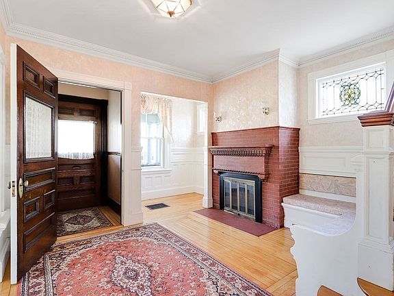 Located on the Newton line, this Arts and Crafts style, American Foursquare home has been lovingly maintained by the same family for over 50 years. When you enter the home you are greeted by a grand foyer featuring a wood burning fireplace with built-in seating and storage. Many original architectural details of this home have been maintained and restored including stained glass windows, dental crown molding, and a built-in china cabinet with leaded glass doors. This home has been modernized with a newer heating system, replacement windows and a new roof (~2017). There is great potential here for a savvy homeowner to make additional updates such as paint, refinishing floors or even converting the walk up attic into additional living space. Conveniently located just 1/2 mile to the MBTA express bus, less than 1 mile to the commuter rail and ~2.5 miles from the Green line. This is a great location for commuters. Don't miss this opportunity to build equity and make this your dream home.