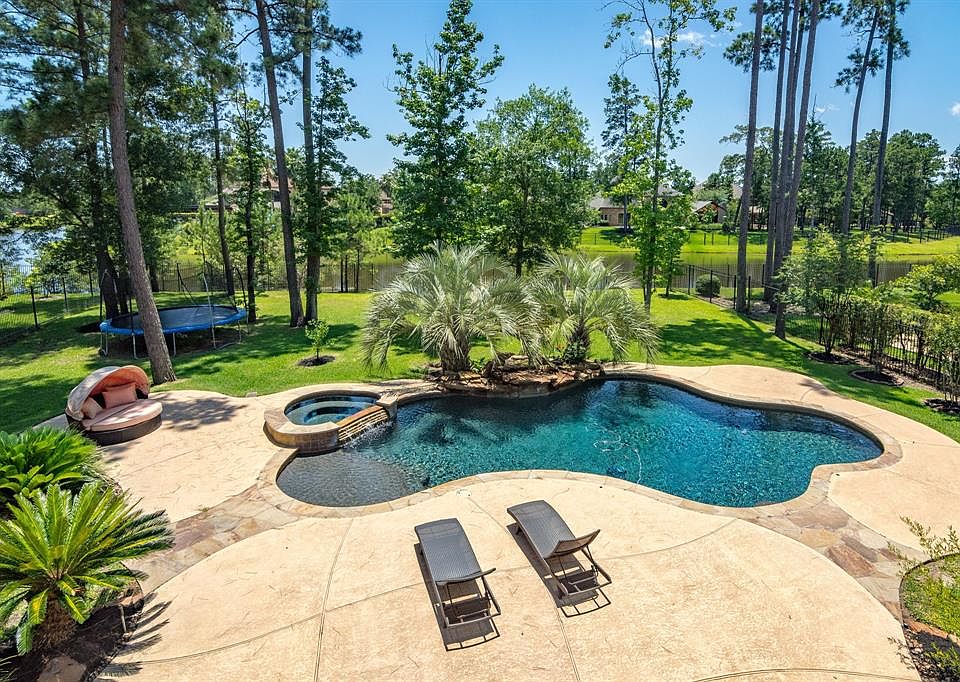 Gorgeous waterfront home by Trendmaker. Grand entry w/ soaring ceilings and a stunning remodel which includes- french oak wood flooring, updated kitchen, updated master bath + outdoor kitchen addition. Downstairs primary bedroom suite with water views + two closets. Huge secondary bedrooms upstairs w/large walk in closets + wood flooring. Home features a game room, media room, butler's pantry, mudroom w/ built in bench, laundry chute to the laundry room, art niches, plantation shutters, open floor plan, breakfast room, office, tandem 3 car garage + large balcony overlooking backyard! Enjoy your expansive backyard oasis with an amazing salt water pool, spa, waterfall, plenty of extra room for kids and pets to play + a large covered outdoor patio with an updated kitchen. This home is perfect for entertaining indoors or out! Upstairs bedrooms freshly repainted neutral color. Was temporarily withdrawn during Coronavirus lockdown.