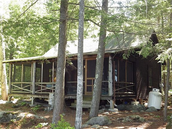 GREAT POND! Classic cottage with additional guest house, garage, two boat houses situated on 12+/- acres with 299' of private lakefront on Jamaica Point. Western facing and close to the water with great views and amazing sunsets! Main cottage has an expansive three-sided wrap around porch, two bedrooms, full bath, laundry, living room and dining area steps from waterfront. Guest cottage has kitchen, dining area, living room, one-bedroom, full bath and screened in porch steps from waterfront. Two boat houses at water's edge with private dock. A must see to appreciate this unique property that would make a wonderful family compound. Great Pond provided the inspiration for playwright Ernest Thompson's On Golden Pond & the mailboat still operates during the summer today, with mailboxes proudly standing at the end of numerous docks around the lake. With both cold & freshwater fisheries, this 8,533-acre lake is a fisherman's dream!