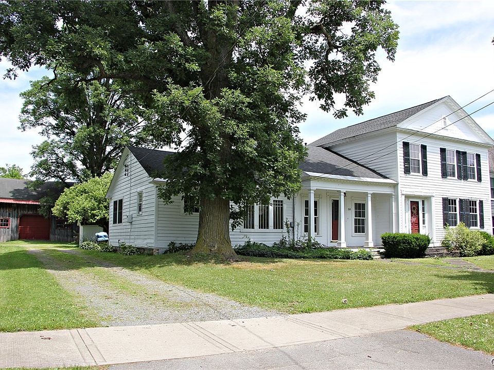 Distinguished mid-1800's home features hardwood floors, beautiful woodwork and a surprising amount of closet space. Kitchen opens to an informal dining area, next to a more private formal dining room. Living room with fireplace and a large first floor bedroom with dressing room. Laundry hookup and half bath on first floor as well as an office that could be used as a guest bedroom. Up the graceful staircase you will find another large bedroom with walk-in closet, a full bath, office or nursery, and a finished attic room that could be made into an additional bedroom. A large barn in the back serves as garage, storage and workshop spaces. In addition to the stone patio in the backyard, please don't miss seeing the large open yard behind the barn, perfect for playing sports or gardening.