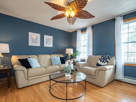 Nestled on 2+ acres surrounded by private woodlands, this impeccably maintained farmhouse Colonial offers comfortable,versatile, & functional living spaces well-suited to meet a variety of needs. Sip your morning coffee while taking in breathtaking views from the covered front porch or gather with family and friends on the sizeable composite deck overlooking the serene backyard w/pool inviting you outside on those warm summer days. At the hub of this beautiful home is a spacious & updated eat in kitchen which opens to a welcoming living room complete w/pellet stove that will warm you on those cold winter days. The 2nd floor boasts a generous master suite with spacious walk-in closet & master bath plus 2 additional bedrooms with full bath. Additional living space in the expansive finished lower level features a 3/4 bath, 2 versatile bonus rooms & plentiful storage. A high efficiency, low maintenace home featuring leased solar panels, nest thermostats, vinyl siding, & irrigation system.
