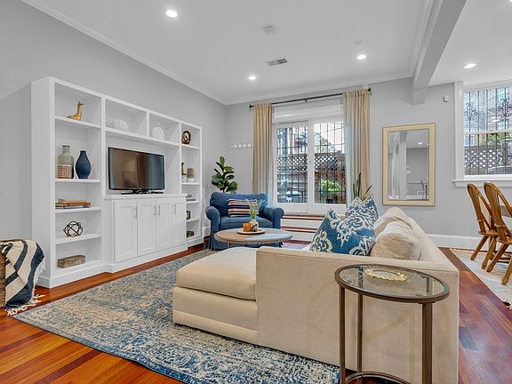 Situated on one of the South End’s most coveted streets, this corner exposure 3 bedroom, 2.5 bath parlor/garden duplex with parking is located on an idyllic cul-de-sac directly across from Titus Sparrow Park. The open living/dining/kitchen area is enhanced by high ceilings and hardwood floors. The expansive chef’s kitchen features a Sub-Zero refrigerator, Viking gas stove, full-size wine refrigerator, oversized kitchen island and breakfast bar, plus a custom beer cellar/pantry room. Grill or dine al fresco on your private patio, or enjoy the sun on the large private deck. The upper level offers two generously proportioned en suite bedrooms with high ceilings, oversized windows and recently renovated bathrooms. A third bedroom makes a perfect nursery or office. Additional highlights include ample closet space, central AC, and one direct-access parking space. Experience urban living surrounded by parks and green spaces, just steps from Back Bay and South End amenities.