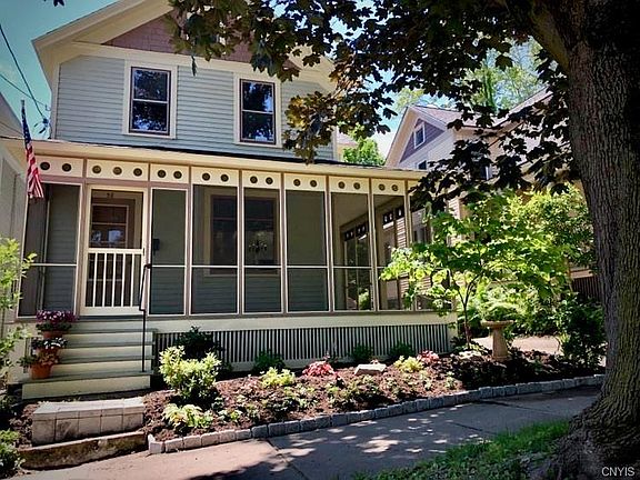 Just a short walk from the Oswego Harbor, this Renaissance Block colonial is the perfect blend of new and old. Modern highlights complete this meticulously updated home: New roof, fresh paint, gleaming floors, stainless appliances and much more! Curb appeal and charm are first noticed from the street. The fully screened in wrap-around porch invites hours of relaxation. Preparing a meal in this eat-in kitchen will be a pleasure. Notice the custom soapstone counters, farm-style sink and extra pantry space nearby. As you visit, you'll find yourself planning the decorations in each of the large dining and living spaces. Original hardwood floors are a beautiful feature throughout the 2nd floor, and the full bath is modern and new! So much more to be seen, so make an appointment today! Note: Exclusive year-round on-street parking has been arranged for 2 parking spots for this home as it shares a Right-of-Way driveway with the neighboring home.