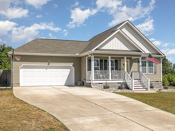 Priced REDUCED, Seller is relocating and needs this property to move!!!! There is something to be said for a charming ranch home, on a nice flat landscaped fenced in back yard for the pets and kiddos to play!This peaceful country subdivision is ideal to raise a young family or to retire to a less hectic way of life! Ranch style homes are great for ease of everything being on 1 level.... this home offers a spacious family room with a cozy fireplace, large Master bedroom with WIC and and private bath, 2 additional bedrooms for kids, guest, roomates or home office! Wouldn't be NC if you didn't have a front porch to enjoy your morning coffee of visit with a neighbor. If front porch is not your thing no worries this home comes with the much desired screened porch oasis!! A grilling deck and a fire pit patio for summertime smoores... and a storage bldg within the very private fenced in back yard! Everyone will enjoy having the very large 22 x 22 attached garage that will fit 2 vehicles nicely and more!! Come take a look and prepare to fall in love with this adorable home!