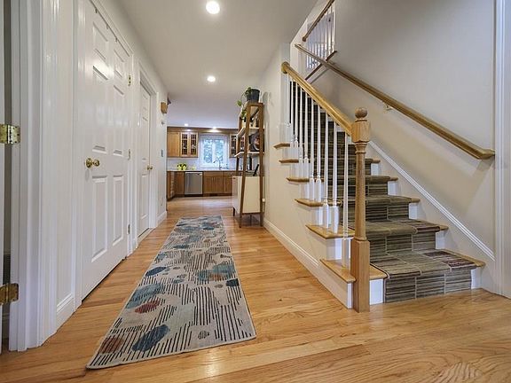 You will love staying home in this inviting, well maintained Colonial with an open floor plan and plenty of space for everyone! Craftsman style kitchen with breakfast room, upgraded white quartz counters, newer stainless appliances and a great pantry. Front to back living and dining room and a large family room with gas fireplace and soaring cathedral ceiling. Crown moldings and gleaming hard woods. Private Master with bath plus 3 other good sized bedrooms on second floor. An awesome third floor with 2 large rooms and custom built-ins offers additional space. Walk out lower level is awesome with granite kitchenette, big living room, large office or BR, full bath and opens to a private patio. Deck off the FR over looks the big wooded back yard. Huge custom patio with granite steps provides easy access from driveway to lower level. Terrific value and priced well below assessment Covid Rules apply,Masks required