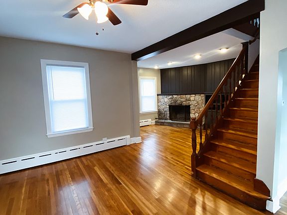 Charming half duplex located just outside the center of town. Enter this property in to a cozy dining room. Just off of the dining room is a great sized kitchen with plenty of cabinet and counter space. The full bathroom is off of the kitchen and through the same hall space is also the laundry room with extra storage as well. The rest of the main floor consists of a beautiful living room and a separate sitting room with beautiful built ins and a fireplace. The staircase out of the living room leads to the upper level where both the primary and second bedroom are located both freshly painted with brand new wall to wall carpet. Tenant to provide work history, current paystubs, and references. Liability (renters) insurance required for lease signing. Anyone 18+ must have credit, criminal background, and eviction history run. $38 per applicant is non refundable. One year lease required. Tenant is responsible for utilities. Landlord will cover grounds maintenance and sewer fee. Ask about pet restrictions.