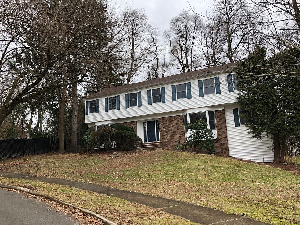 Situated at the end of a preferable cul-de-sac, this colonial home has all large, bright rooms and many closets throughout. Entering the home into a spacious foyer leading to the living room with a beautiful fireplace and the formal dining room. Family room with French doors connected to the custom eat-in kitchen with newer stainless steel appliances, granite counters, and pantry. Access through individual sliding doors to a big deck in the private backyard. First floor bedroom for guest, full bath, and laundry/mudroom with outside exit. Second floor Master en suite has a walk through closet accessed to an attached huge office/exercise or nursery room. Three more large bedrooms, remodeled bath, and a full-sized linen closet. Finished lower level has custom mirrored sliding doors for built-in shelves, and, with laminate flooring, can be used as a dance studio or exercise room, a powder room and an additional playroom or guest room, entrance to the over-sized 2 car garage. 3 HVAC zones and central vacuum. Private location yet minutes to shopping center, restaurants, transportation to NYC, and all major banks. Outstanding schools.