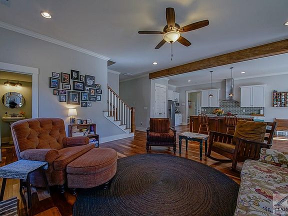 Just over 2 years old, this newer construction home is located in the heart of downtown Watkinsville. Likely the most desirable spot for those seeking a 5 Points feel with an Oconee County address, it marries the best of what both worlds have to offer and couples the convenience of new construction to complete the picture. With a 1.5 acre lot on a private street, the house has a long driveway which enhances the "private, yet not remote" appeal. The charming front of the home features a wide rocking chair front porch-perfect for those long summer evenings. Just inside the front door, you will find a great study (office, sitting room, etc) on the right and a guest suite with an en suite bath on the left. Just beyond is the open kitchen/great room combo which has a stunning brick fireplace. The kitchen has a generous center island and all the appointments one would imagine: high end appliances, counter tops, gorgeous tile backsplash and so much more. Completing the main floor is the mudroom with built in cabinets and cubbies for everyone's coats, shoes and backpacks. Off the back of the home is the amazing screened porch which overlooks the wide, level, grassy backyard. Upstairs are 3 additional bedrooms (one is the master suite) so that the children are never far from earshot, and a third full bath. There is a smart landing at the top of the stairs which is just the right size to be a bonus living space for all to enjoy. The epitome of the Modern Farmhouse, this quintessential charmer has it all: looks, location, functionality and form. One of a kind and won't last long.